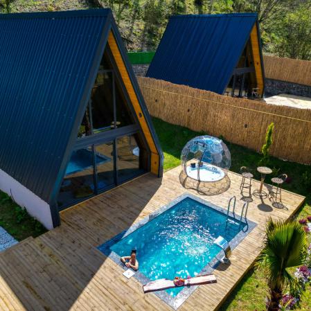 Sapanca İstanbul dere 1+1 ( özel ) Isıtmalı Havuz - Muhafazakar - Jakuzili - Elektrik Şömineli 3 Kişilik Bungalov