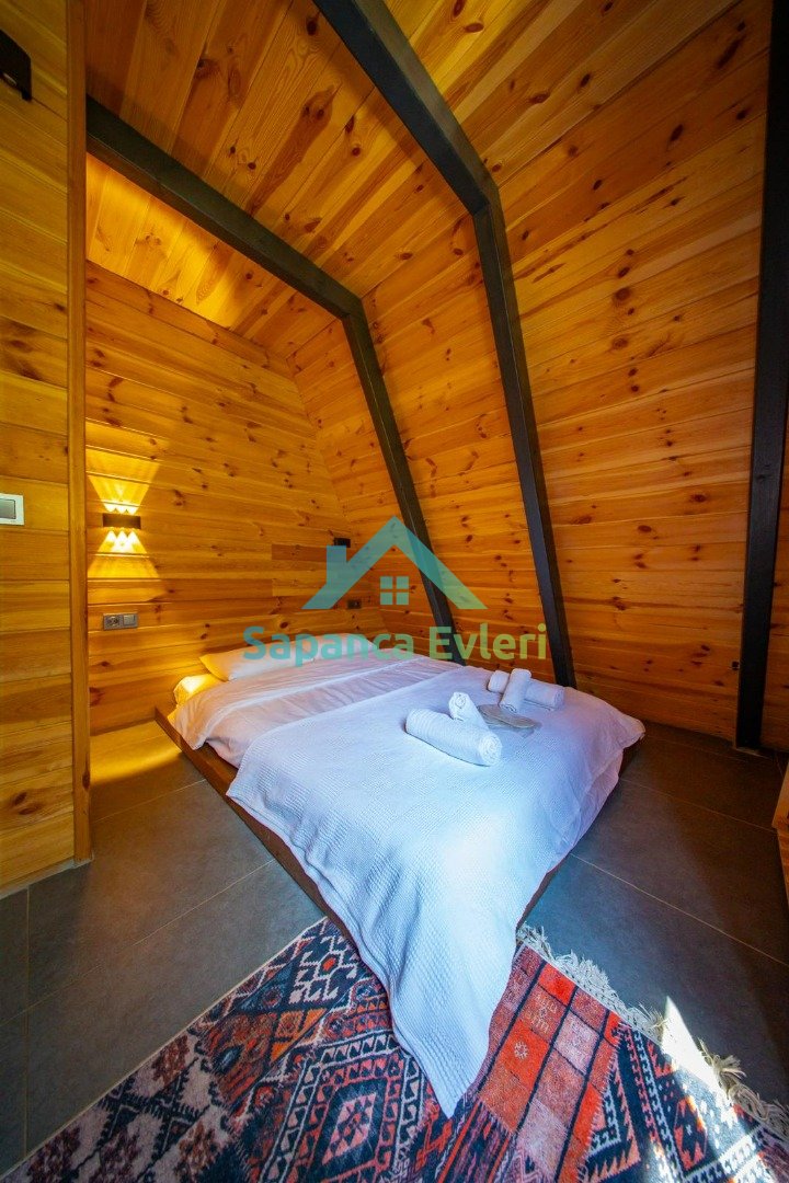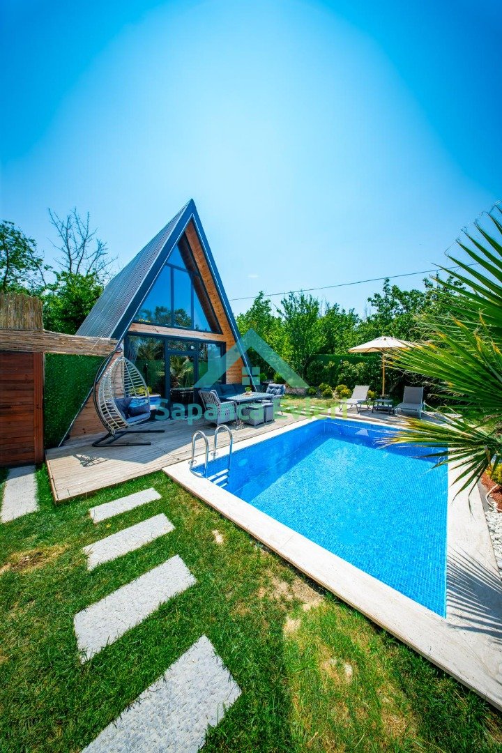 Sapanca Yanık mevkiinde konumlanan bu 2+1 lüks bungalov; 5 kişilik konaklama kapasitesi, ısıtmalı özel havuzu ve korunaklı bahçe alanı ile aileler ve arkadaş grupları için konforlu bir tatil imkanı sunar. Doğa ile iç içe sakin konumu sayesinde şehir stresinden uzak, huzurlu bir konaklama deneyimi sağlar.
