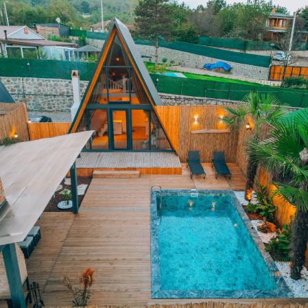 Sakarya Sapanca Şükriye de 2+1 Isıtma Havuzlu-Şömineli-Korunaklı 4 Kişilik Bungalov