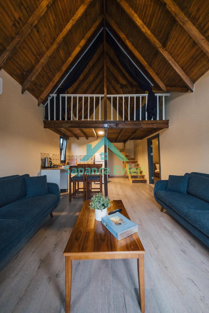 Sapanca Çay İçi’nin doğayla iç içe atmosferinde yer alan bungalovlarımız, dağ manzarası, tam korunaklı yapısı ve konforlu detaylarıyla huzurlu bir tatil sunar. 2+1 planlı bungalovlarda loft kat dahil olmak üzere çift kişilik yataklar, salon alanı ve modern kullanım alanları bulunmaktadır.