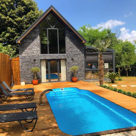 Sakarya Sapanca Memnuniye de 2+1 Özel Havuzlu - Korunaklı - Şömineli 6 Kişilik Bungalov