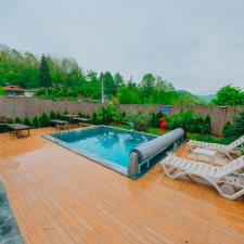 Giriş katında havuza bakan kısımda 1 oda daha bulunmaktadır. Jakuzili dir. 2 Kişi de orda konaklama yapabilmektedir.