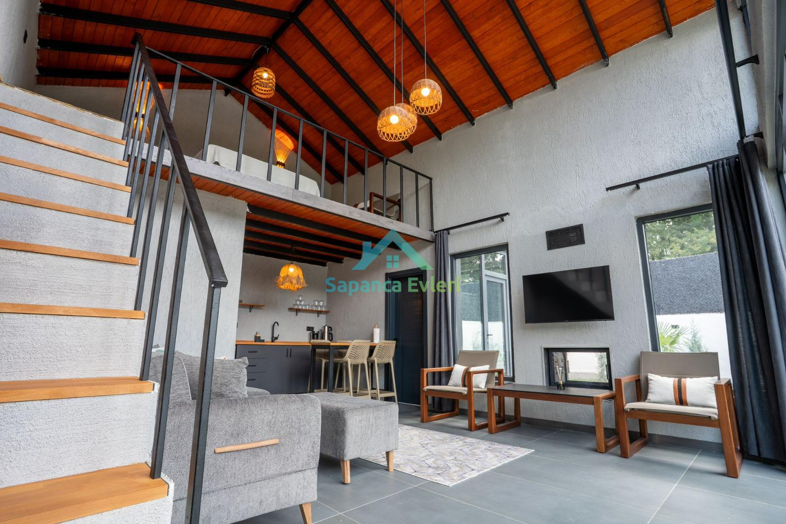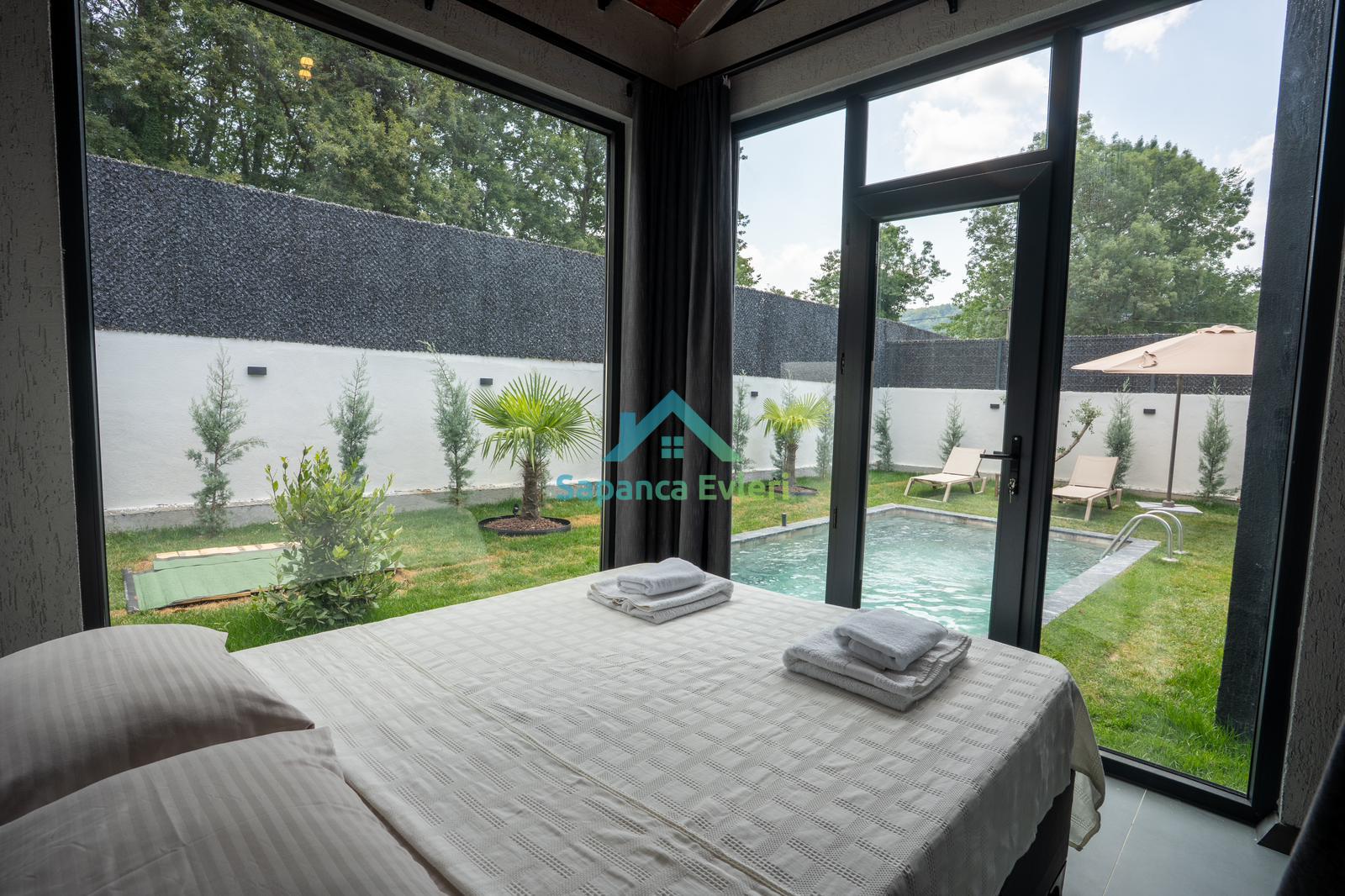 Sapanca/Akçay da 2+1 Isıtma Havuzlu, Şömineli, Korunaklı, 6 Kişilik Bungalov
