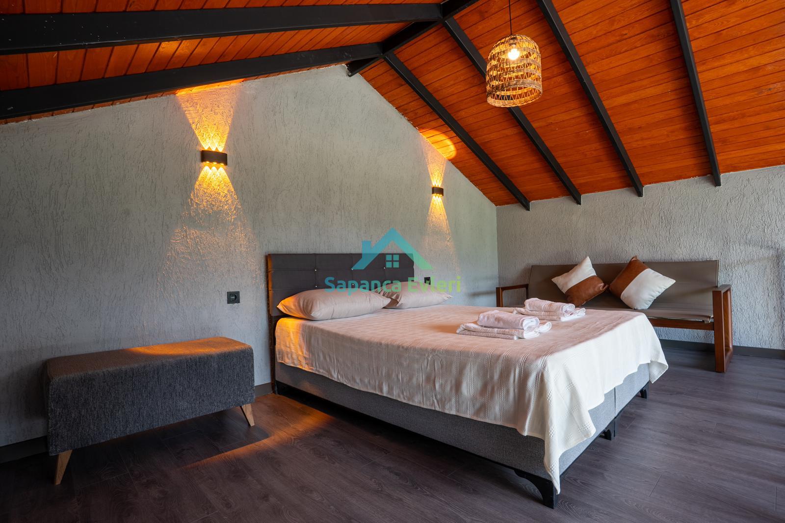 Sapanca/Akçay da 2+1 Isıtma Havuzlu, Şömineli, Korunaklı, 6 Kişilik Bungalov