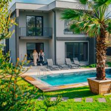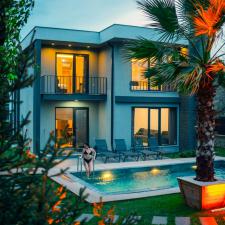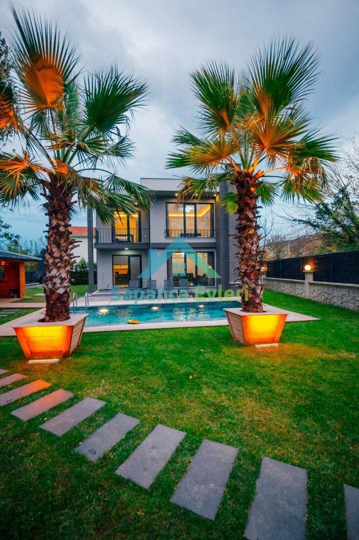 Villamız son derece modern ve lüks bir tasarıma sahip olup palmiye ağaçlı geniş bir bahçeye sahiptir.