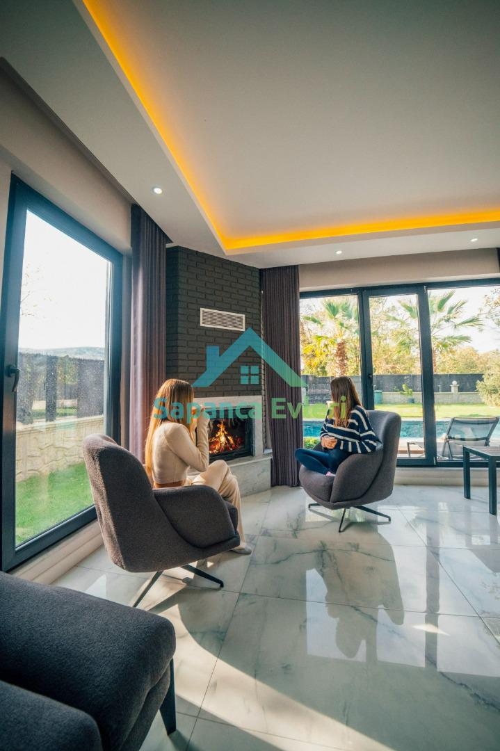 Salonda bulunan şömine ve yerden ısıtma sistemiyle kış aylarında da rahatlıkla kalabileceğiniz bir villadır.