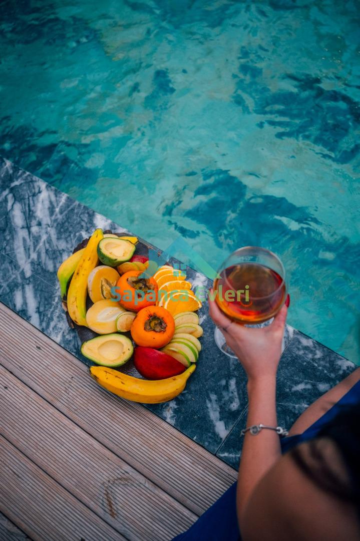 Havuz terasında misafirler için oturma alanına sahip çardak bulunmaktadır.
