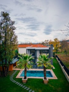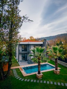 Salonda bulunan şömine ve yerden ısıtma sistemiyle kış aylarında da rahatlıkla kalabileceğiniz bir villadır.
