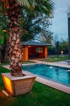 Havuz terasında misafirler için oturma alanına sahip çardak bulunmaktadır.