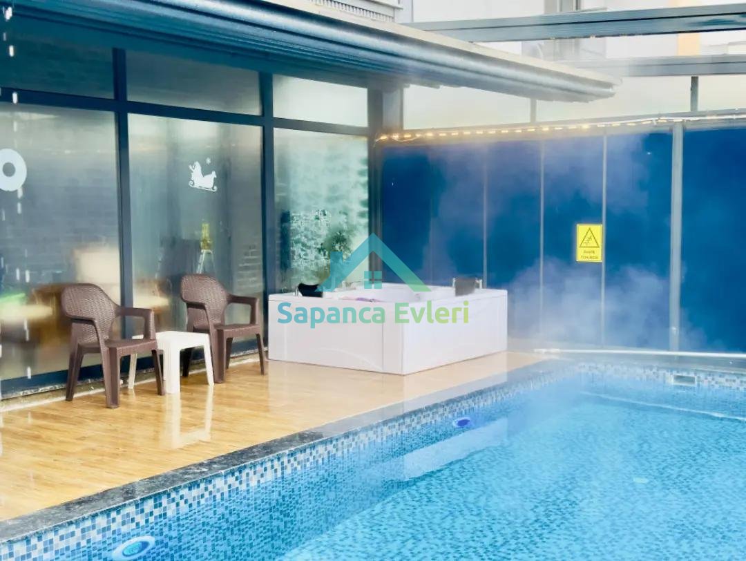 Sapanca Kırkpınar Merkez’de konumlanan bu 4+1 lüks villa, kalabalık aileler ve arkadaş grupları için konforlu ve izole bir tatil deneyimi sunar. 10 kişilik kapasiteye sahip villada, geniş yaşam alanları ve fonksiyonel oda dağılımı ile rahat bir konaklama imkânı sağlanır. Kapalı ve ısıtmalı özel havuzu ile dört mevsim kullanım avantajı sunarken, jakuzisi ve yerden ısıtma sistemiyle konfor seviyesi üst düzeye çıkarılmıştır.