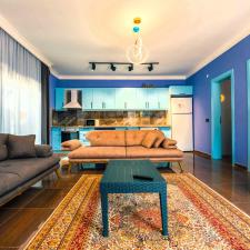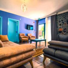 Maximum 6 kişi kalabilir. Etraftan ve diğer odalardan kesinlikle görülmeyen bahçe ve havuzlar muhafazakar aileler tarafından da rahatlıkla tercih edilebilir. Turkuaz taşı, en değerli taşlardan biridir. Yeryüzünün yeşil, gökyüzünün de mavi rengini barındırır. Bu sebeple ‘denge taşı’ olduğu kabul edilir. Güneş ışığının büyük kısmını alan son derece geniş ve rahat oturma gruplarının bulunduğu salonda olabilecek en kaliteli ve ergonomik mobilyalar göz zevkinize hitap edecek şekilde seçilmiştir.