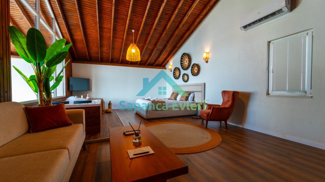 Sakarya Sapanca İlmiye de 2+1 Isıtma havuzlu - Göl Manzaralı - Şömineli - Kısmi  Korunaklı 6 Kişilik Lüks Bungalov