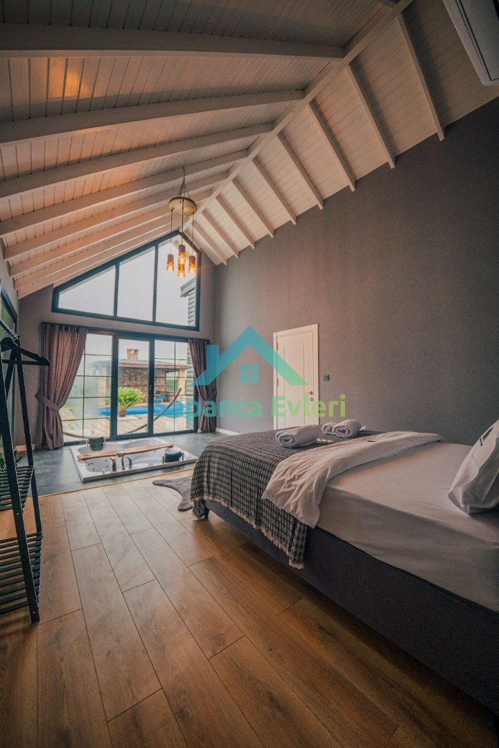 Sapanca Uzunkum bölgesinde konumlanan bu ultra lüks bungalov; geniş yaşam alanı, özel havuzu, jakuzisi ve kış bahçesi ile konforu en üst seviyede sunmaktadır. 7 kişilik kapasitesiyle kalabalık aileler ve arkadaş grupları için ideal bir seçenektir.