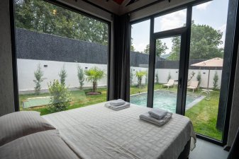 Doğa ile iç içe, korunaklı yapısı sayesinde gözlerden uzak ve konforlu bir konaklama sunan lüks bungalovumuz, aile konaklamaları için ideal bir seçenektir.